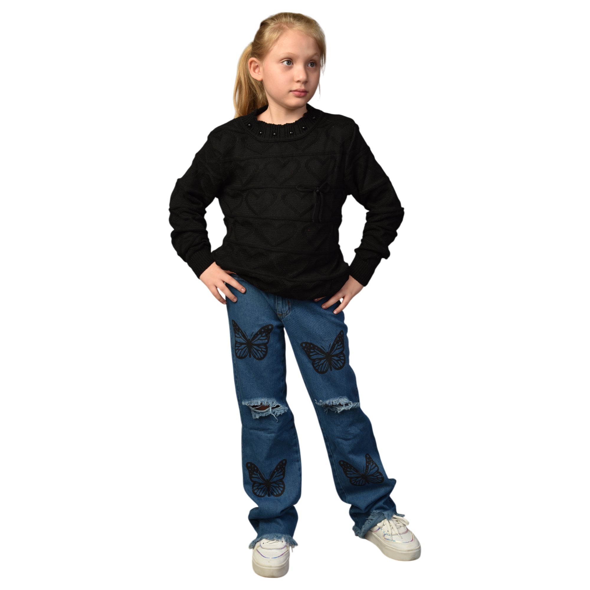 Conjunto Juvenil Feminino Suéter + Calça Jeans Borboleta (10 ao 16 anos)