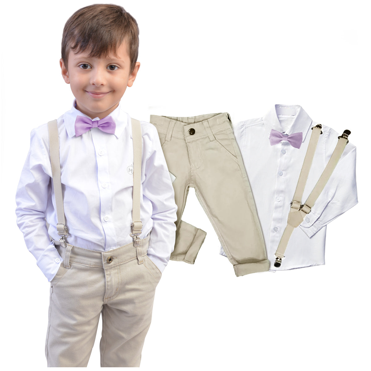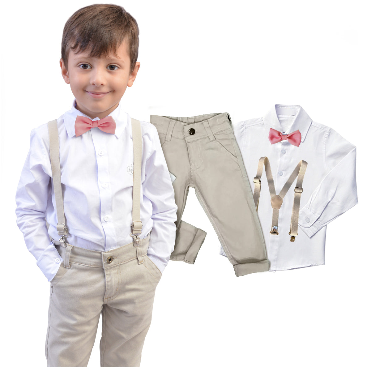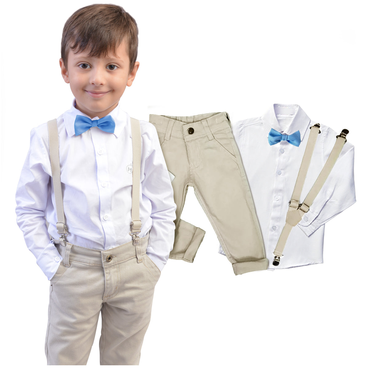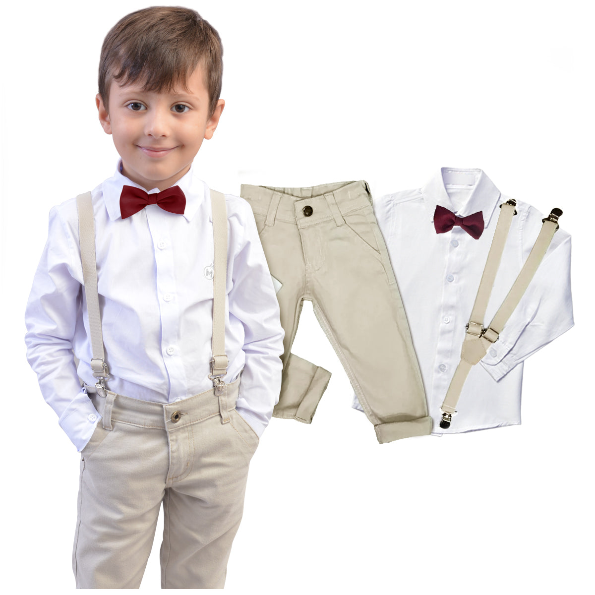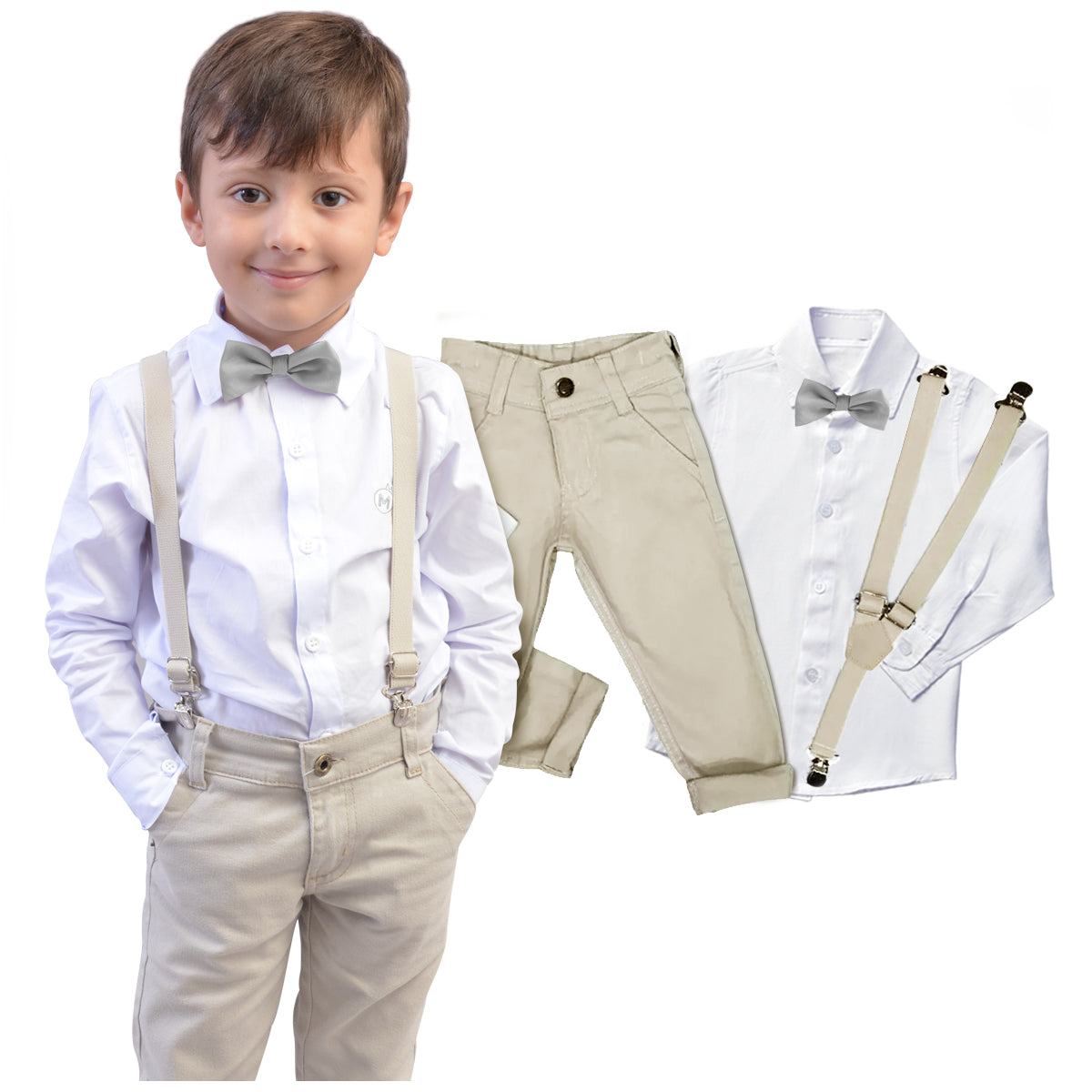 Kit acompanha: 01 Camisa ou Body Social Manga Longa 01 Calça Bege 01 Gravata (Várias Opções) 01 Suspensório