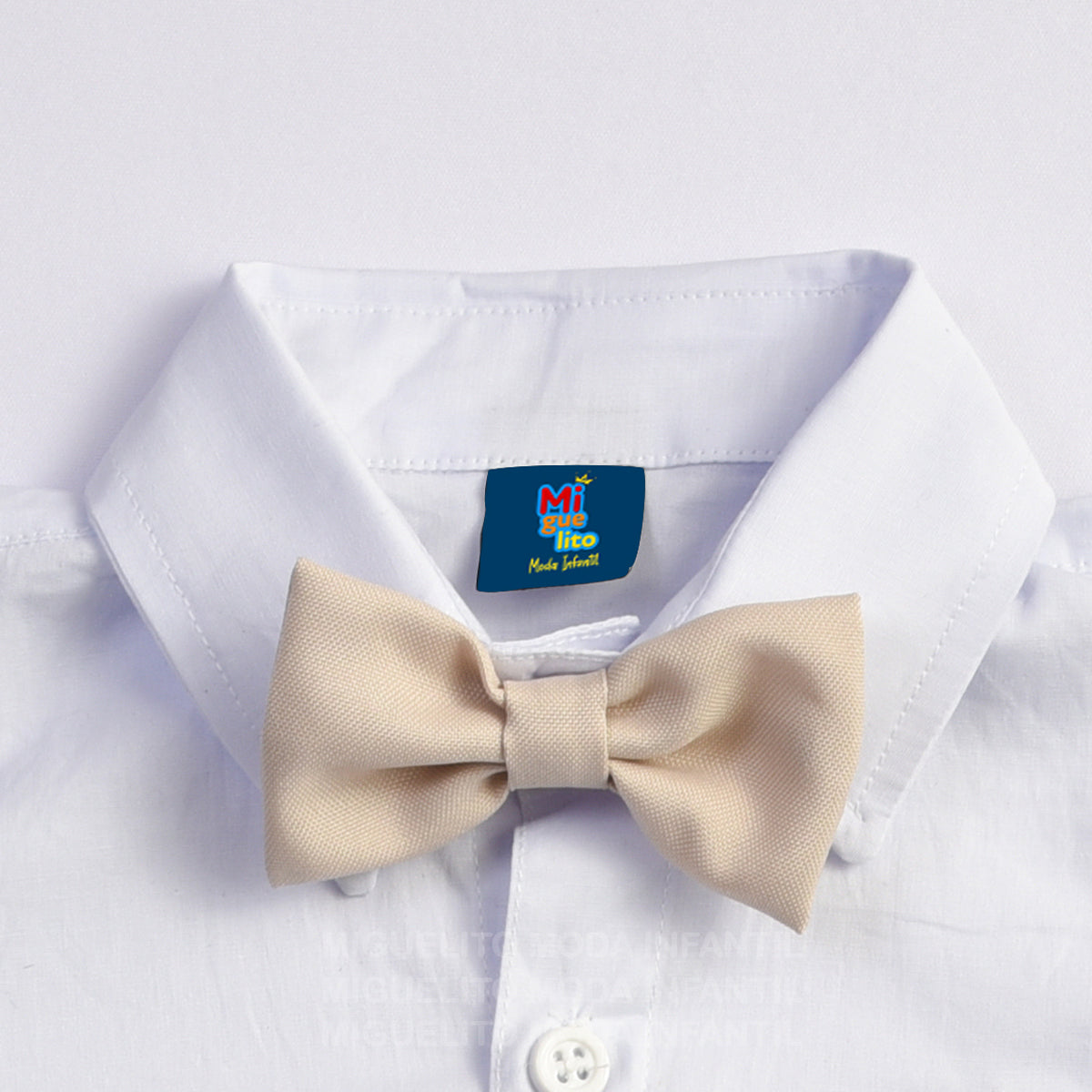O que acompanha: Camisa social branca ou body infantil 100% algodão (maciez e conforto para peles sensíveis) Calça bege com elastano, com ajuste interno para maior conforto e mobilidade Suspensório e gravata bege, que completam o visual com um toque clássico e elegante
