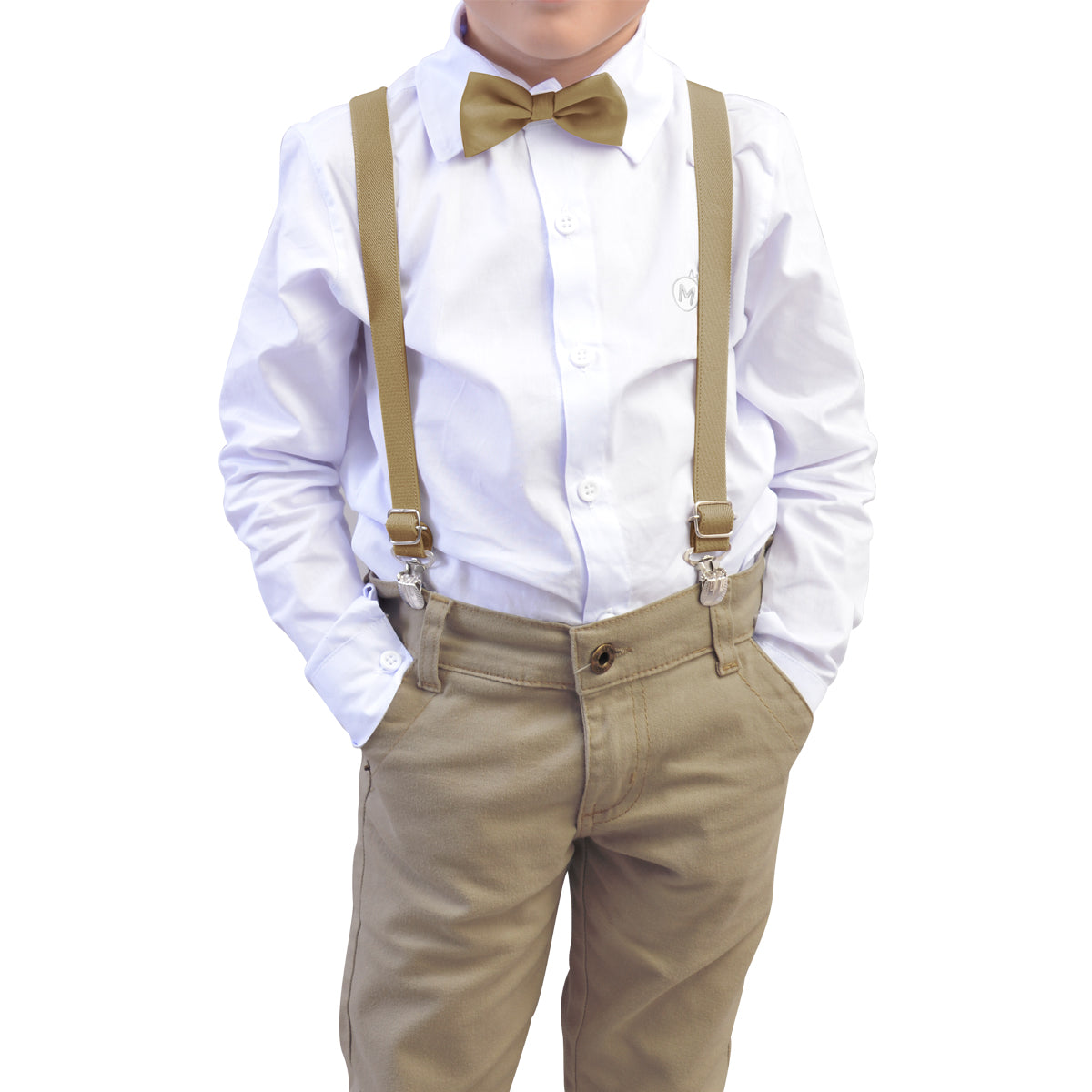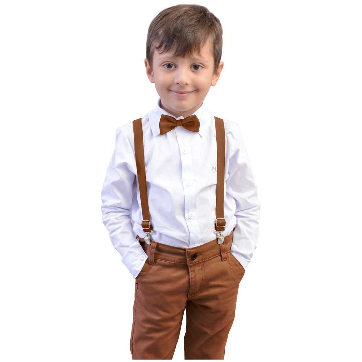 Roupa Social Menino - Bebê ideal para Festas, Batizado, Casamento acompanha Camisa Social Manga Longa algodão, Calça com elastano e regulagem interna, Suspensório e Gravata, confeccionados em material de alta qualidade, extremamente confortável.