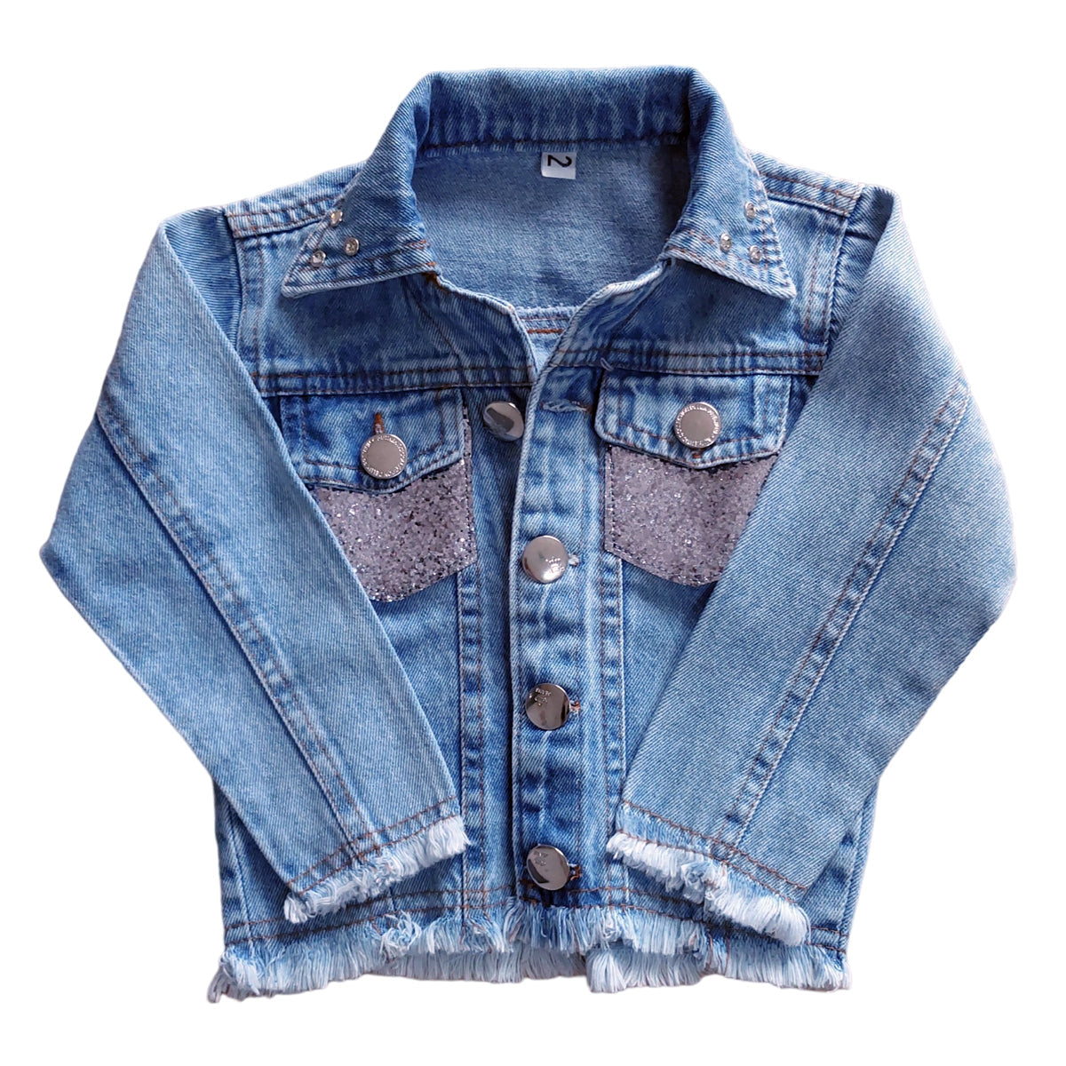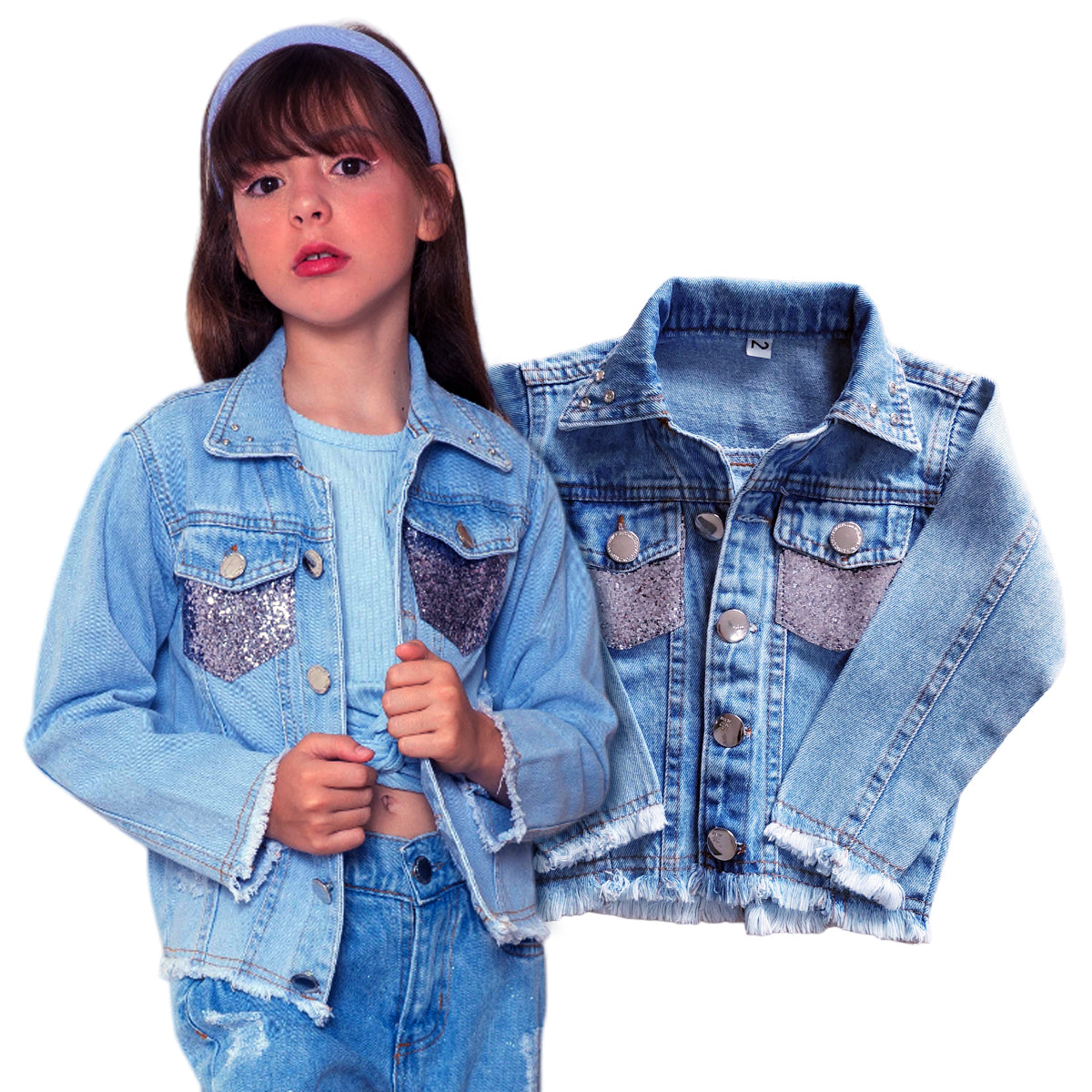 Nossa jaqueta jeans Miguelito infantil estilo "boiadeira" é uma peça de roupa projetada para crianças. Essa jaqueta combina a durabilidade e versatilidade do denim (tecido de jeans) com elementos característicos desse estilo, como detalhes com brilho, costuras reforçadas e abotoamento frontal com botões de metal para sua pequena brilhar com muito estilo.