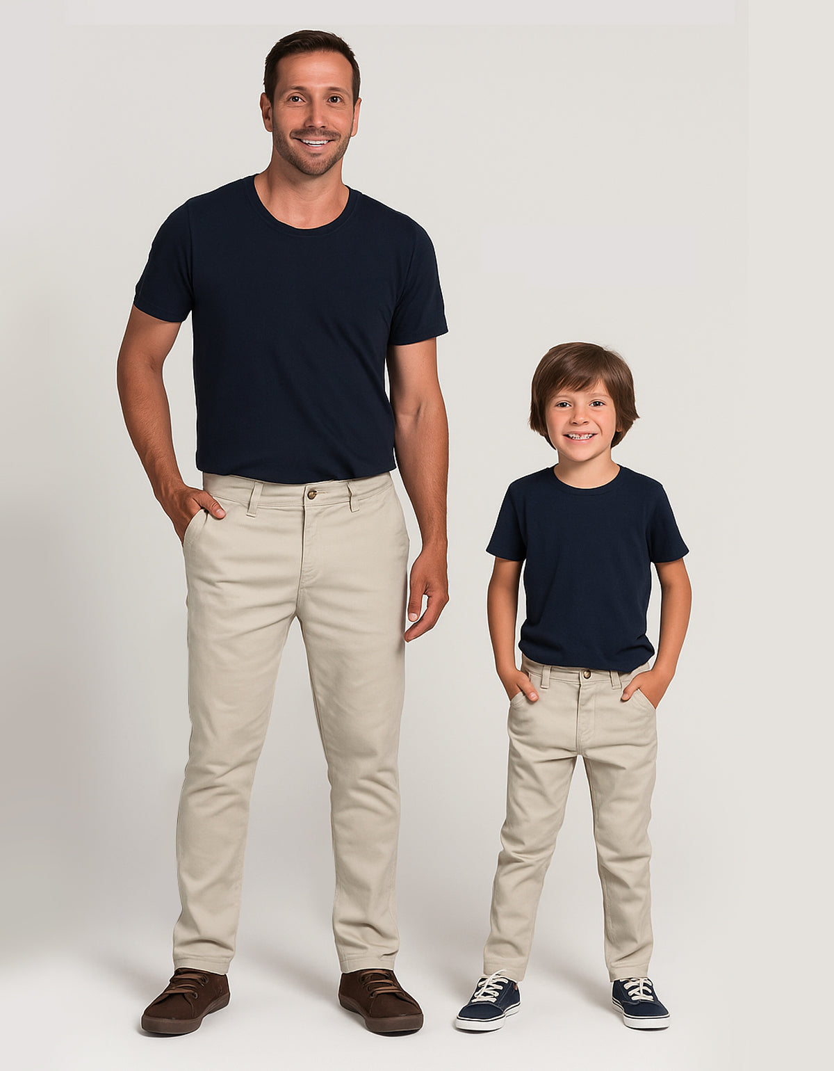 Um presente perfeito para pais e filhos que gostam de combinar estilo e afeto! Este kit exclusivo acompanha 2 calças – uma para o pai e outra para o filho, confeccionadas com tecido de alta qualidade, modelagem moderna e muito conforto.