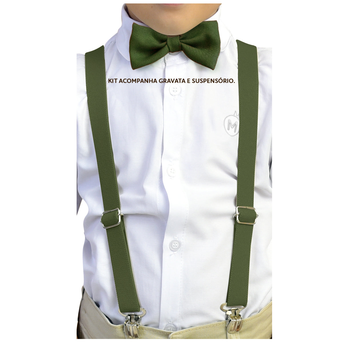 Kit Gravata Borboleta e Suspensório Juvenil Tons de Verdes