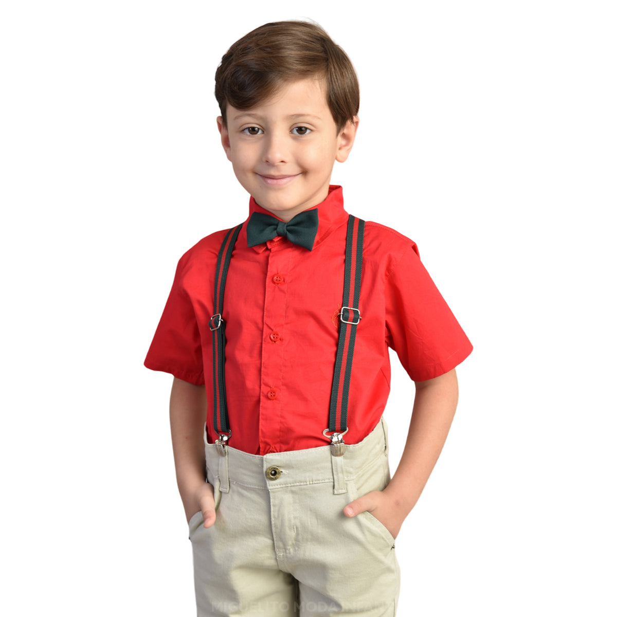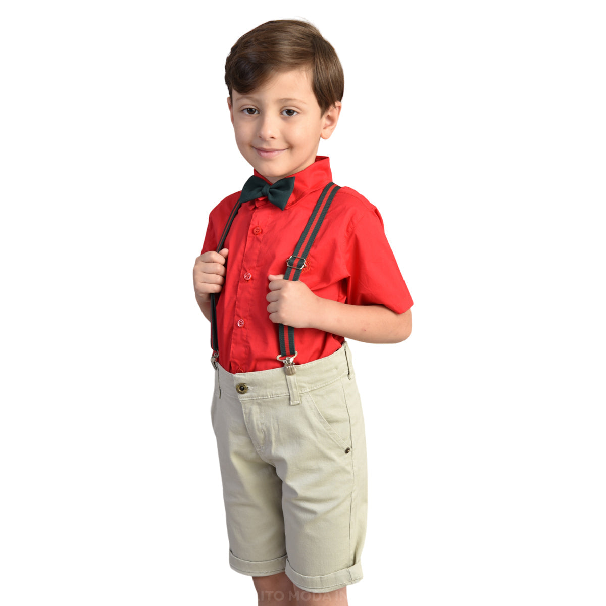 Acompanha Camisa Social Algodão, Bermuda com elastano e regulagem interna, Suspensório e Gravata, confeccionados em material de alta qualidade, extremamente confortáveis.
