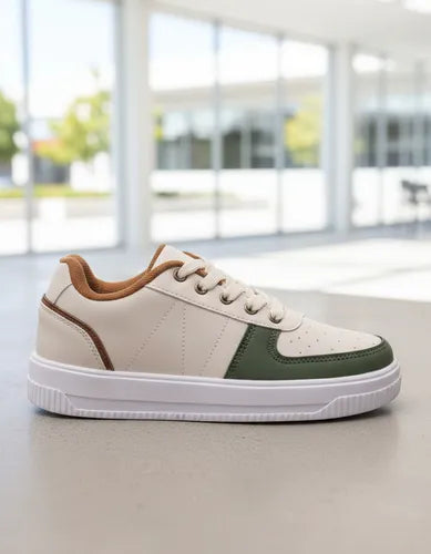 O Tênis Infantil Casual Branco e Azul Marinho, caramelo com bege ou bege com verde oliva e caramelo é a escolha perfeita para os pequenos que adoram estar sempre estilosos e confortáveis! Com um design moderno e versátil, ele combina com diversos looks, desde os mais casuais até os mais arrumadinhos.